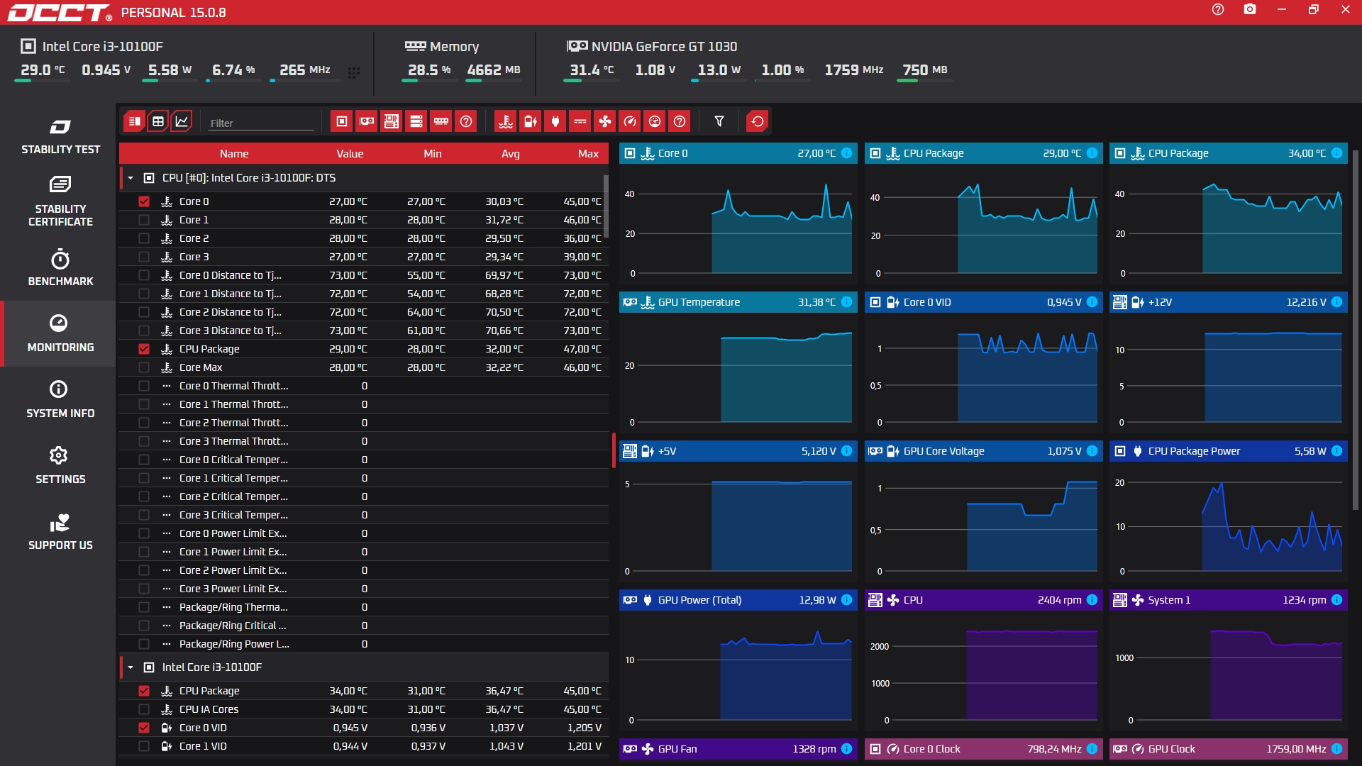 Программа для проведения синтетических тестов на стабильность работы компьютера. OCCT Perestroika позволяет проводить парное тестирование: процессор - память и отдельную проверку стабильной работы центрального процессора и оперативной памяти. Результаты проверки выводятся в виде информативных графиков. Программа поддерживает работу с современными многоядерными процессорами и совместима с последними версиями Windows. В ходе тестов утилита выводит рабочие параметры компонентов системы, используя сторонние программы мониторинга (SpeedFan, AIDA64 и т.п.).