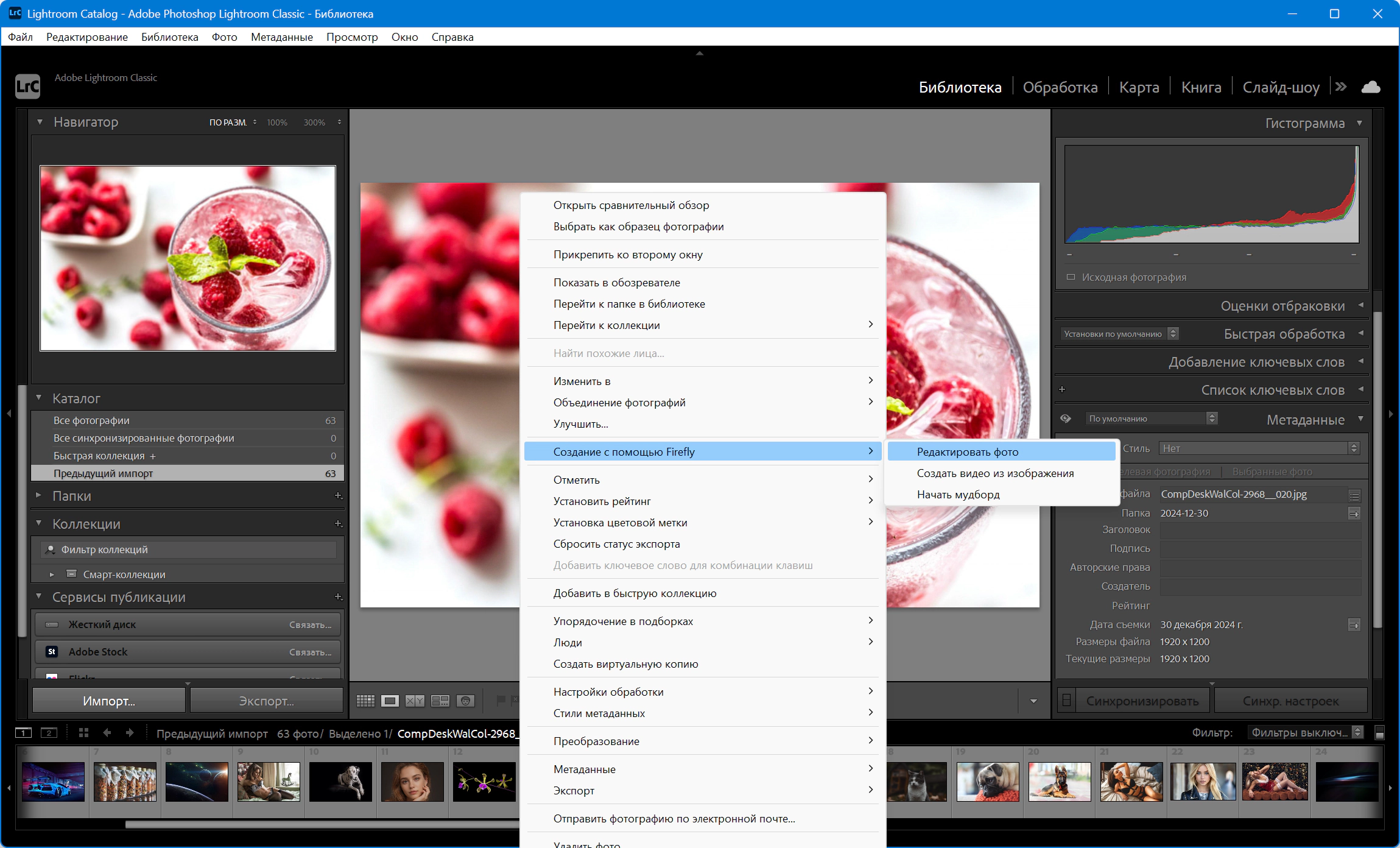 • Загрузка, каталогизация и поиск фотографий (Library)