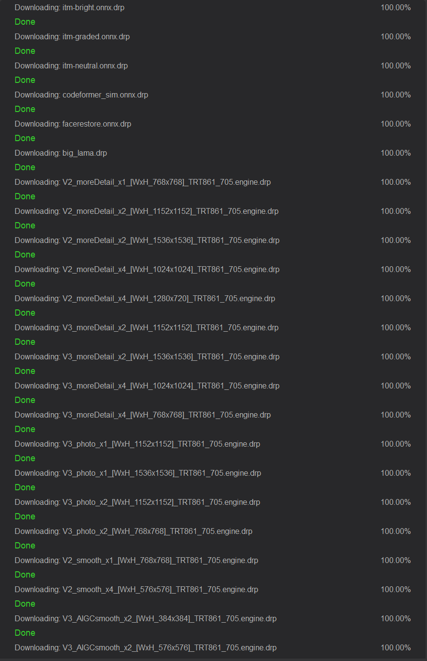 Список моделей ИИ, скачанных программой: