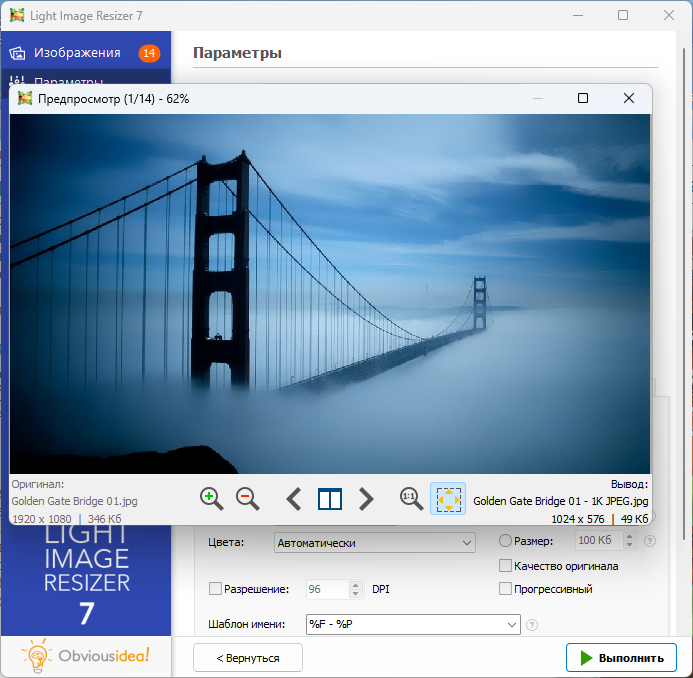Light Image Resizer - программа для изменения размеров цифровых картинок и изображений в различных графических форматах (на данный момент поддерживается работа с файлами JPEG, GIF, BMP, TIFF, CR2, NEF и т.д.). Также в утилите имеются возможности для компрессии файлов, конвертирования из одного формата в другой, экспорта, наложения и управления картинками. Light Image Resizer интегрируется в оболочку Windows, может работать в пакетном режиме, обладает расширенными опциями настройки для продвинутых пользователей.