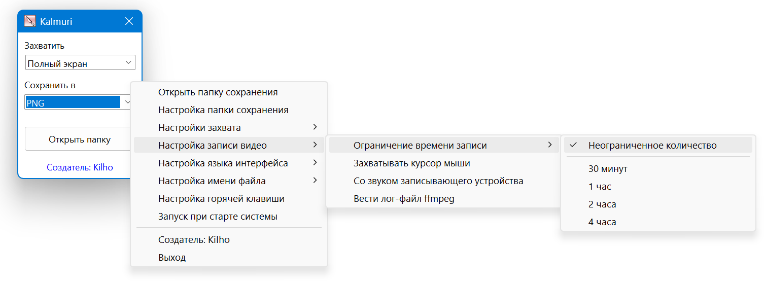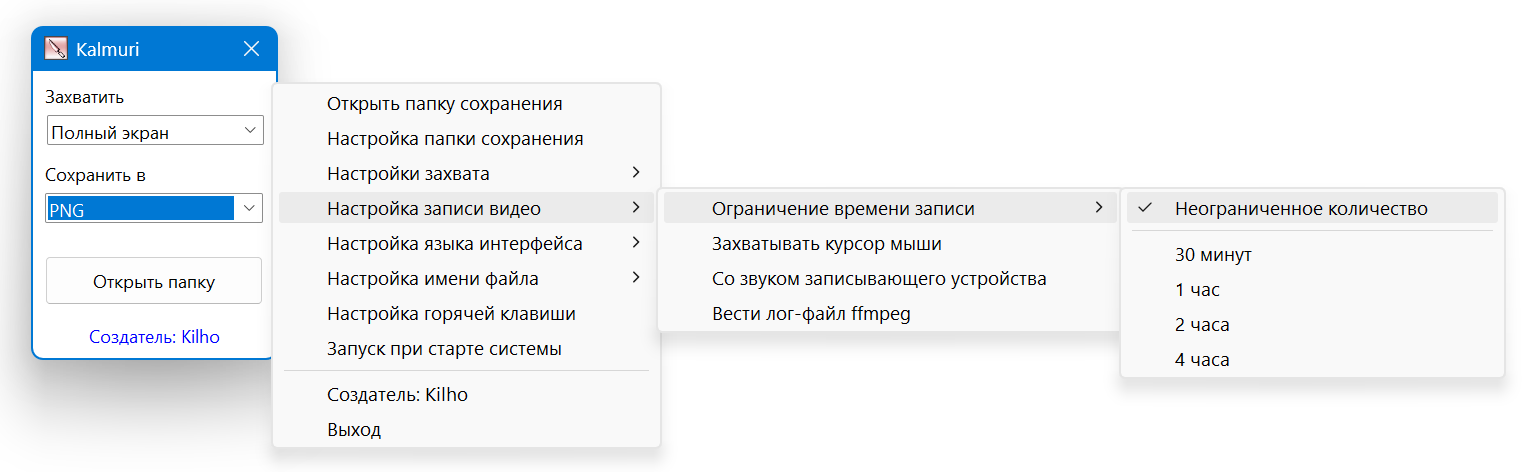 Kalmuri - это удобный инструмент для захвата экрана с минимальным набором опций.