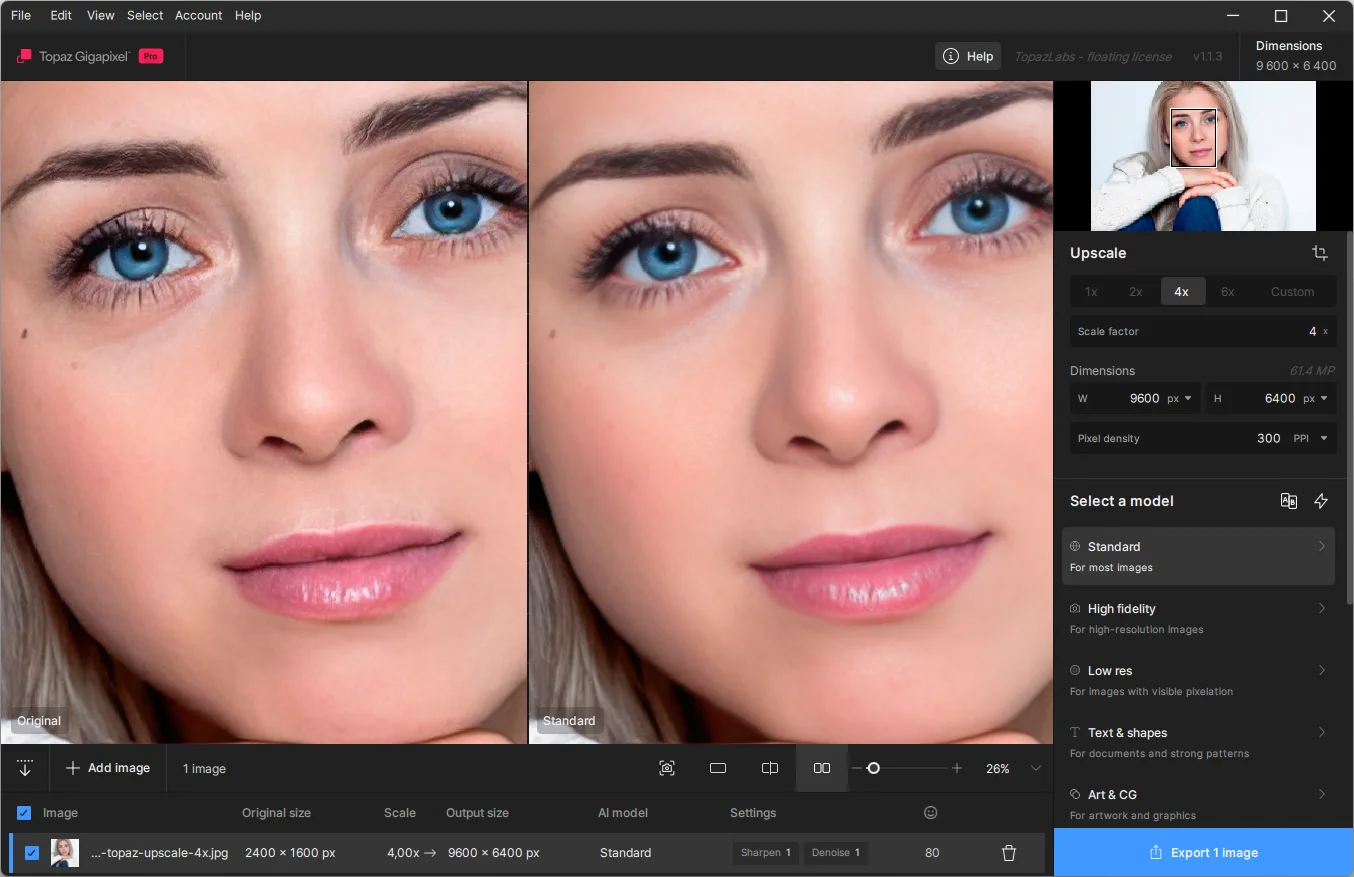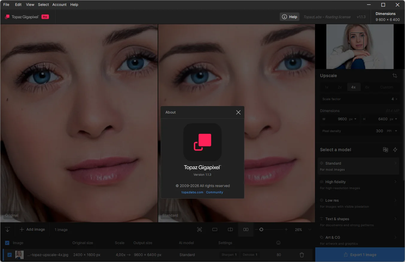 Topaz Gigapixel – это ведущий в отрасли, ИИ-усилитель изображения, который максимизирует и уровень детализации и точность к оригиналу. Это не просто создание новых пикселей, это создание правильных. Таким образом, ваши изображения будут больше и четче, не теряя деталей, с которых вы начинали.