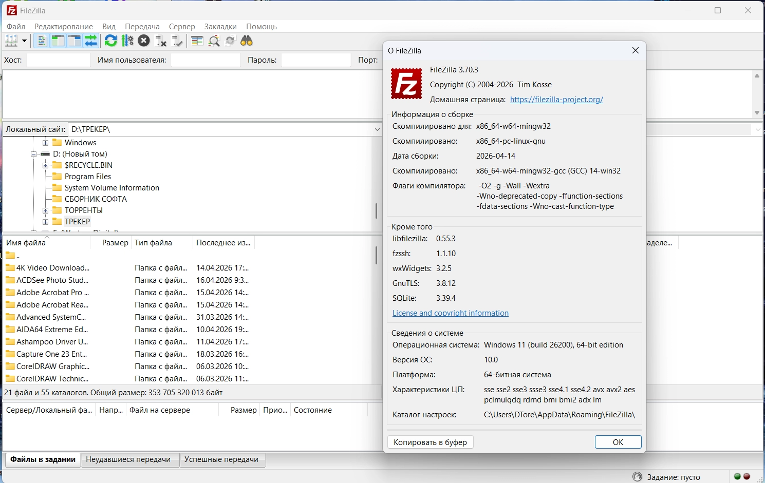 FileZilla - популярный кроссплатформенный FTP клиент для Windows, поддерживает протоколы FTP, FTPS и SFTP, а также включает множество дополнительных функций и параметров передачи данных. Удобный двухпанельный интерфейс позволяет легко загружать и скачивать файлы с удалённого сервера. Дополнительно, FileZilla позволяет искать файлы на FTP сервере, сравнивать каталоги и настраивать ограничение на количество одновременных операций и скорость передачи. Бесплатная версия включает все необходимые функции работы с FTP серверами.