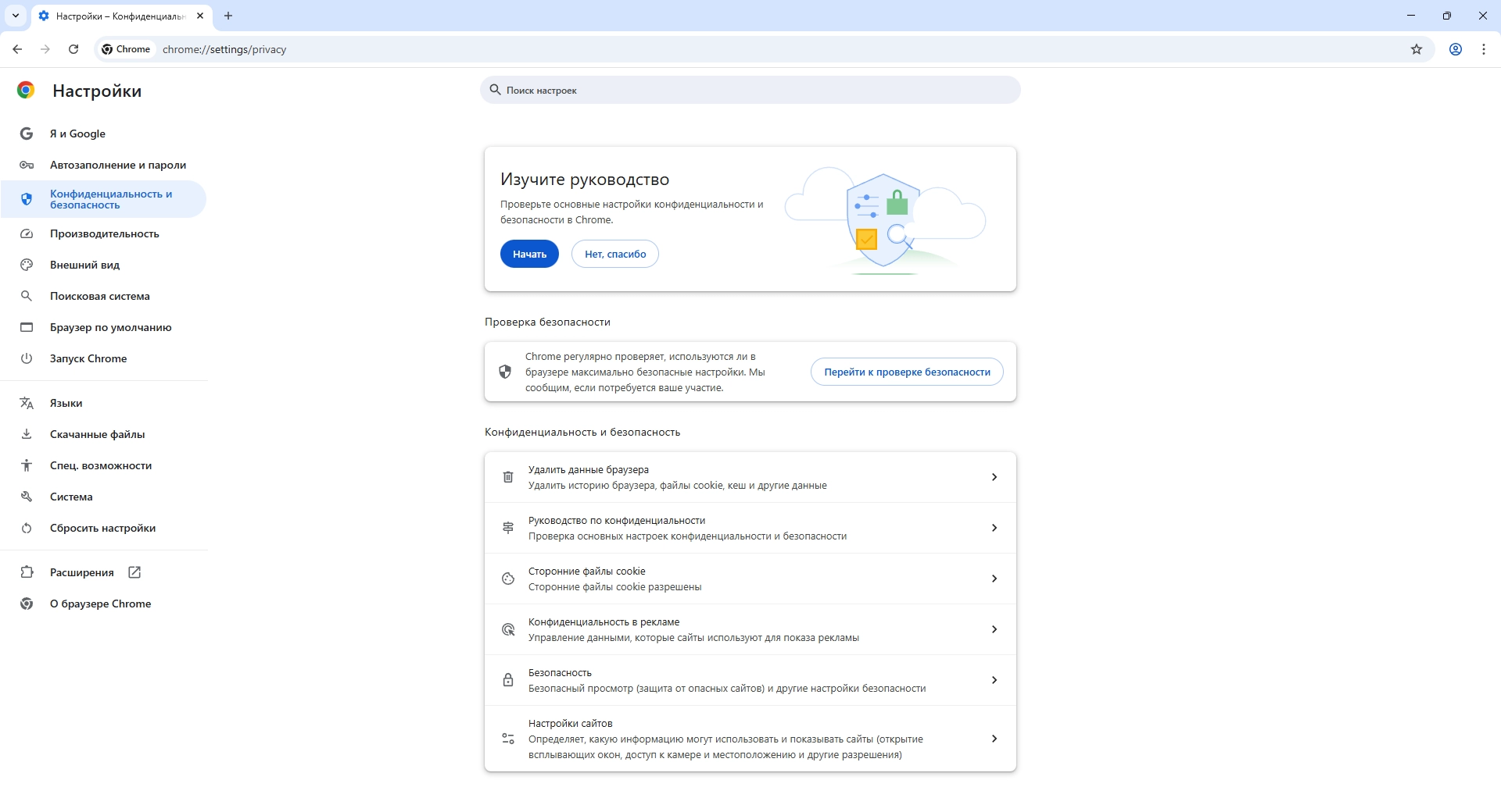 • Режим инкогнито - просмотр веб-страниц без сохранения информации