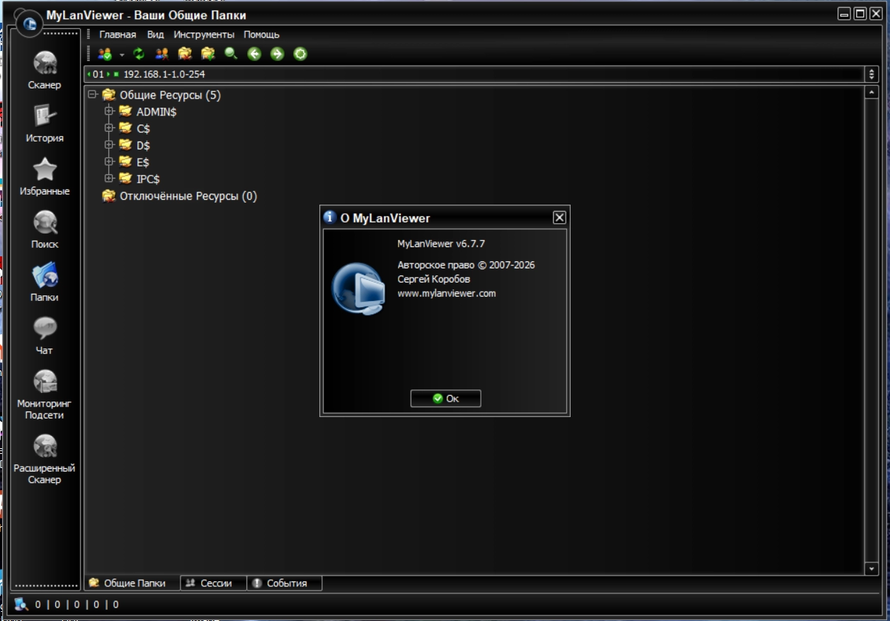 MyLanViewer — программа для сканирования и мониторинга компьютеров в сети с возможностью поиска общедоступных файлов. Она показывает компьютеры в удобном для просмотра виде, который содержит имя компьютера, IP адрес, MAC адрес, общие ресурсы и другие детали для каждого компьютера. С помощью её вы можете следить за компьютерами в сети и получать оповещение, когда состояние одного из них изменится. Также вы можете управлять своими общими ресурсами, запрещать их и закрывать к ним сессии.