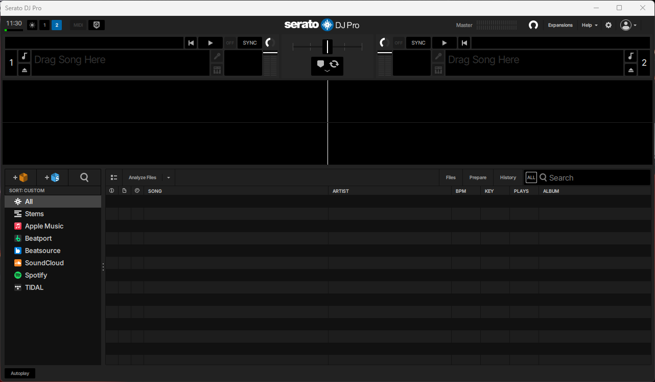 • Использование этих функций также сократит время на подгонку темпа. Файловый менеджер поддерживает работу с обычными и смарт-чартами, а также плейлистами. Подключение осуществлено по принципу Plug&Play, что влечет за собой существенное сокращение времени на настройку. Serato DJ также поддерживает зрелищную визуализацию аудио посредством технологии Waveforms. В программу интегрирована поддержка библиотек ITCH, DJ Intro, Scratch Live и iTunes Music. В качестве дополнения, Serato DJ поддерживает плагин Serato Video.