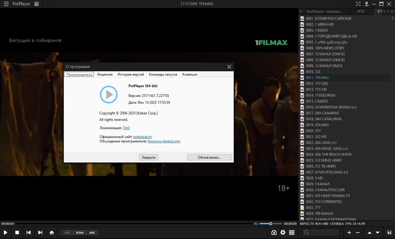 без рекламы и плеера, для просмотра Torrent TV в PotPlayer.