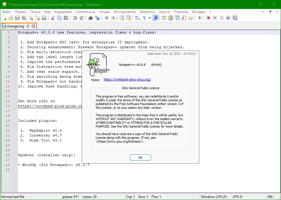 Бесплатный текстовый редактор Notepad++ 8.8.8 Final + Portable
