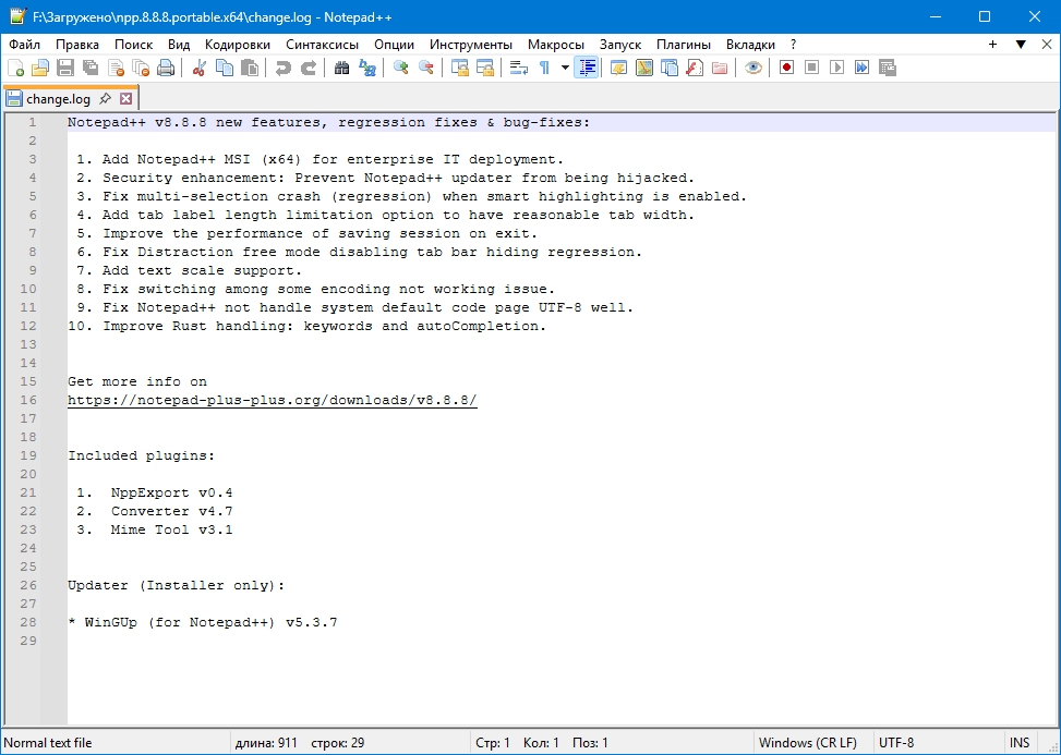 Notepad++ v8.8.8: новые функции, исправления регрессий и исправления ошибок: