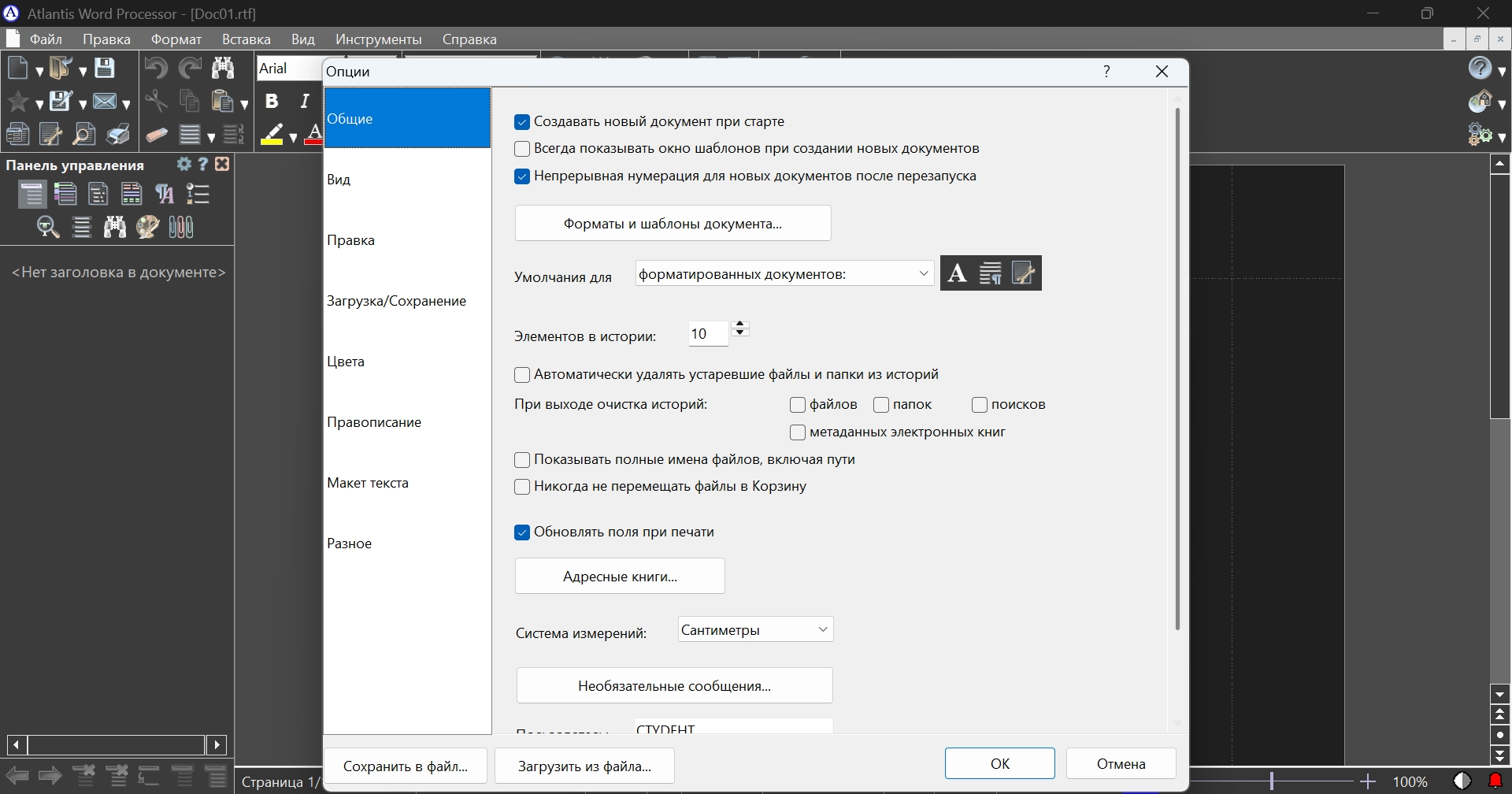 • Безопасность документов обеспечивают две функции программы Safeguard и Backup. Safeguard защищает от критической ошибки или непредвиденного выключения компьютера, востанавливая сохраненную копию Вашего документа. Период, через который будет происходить сохранение, можно указать через меню "Tools" ‡"Options" ‡"Load/Save".