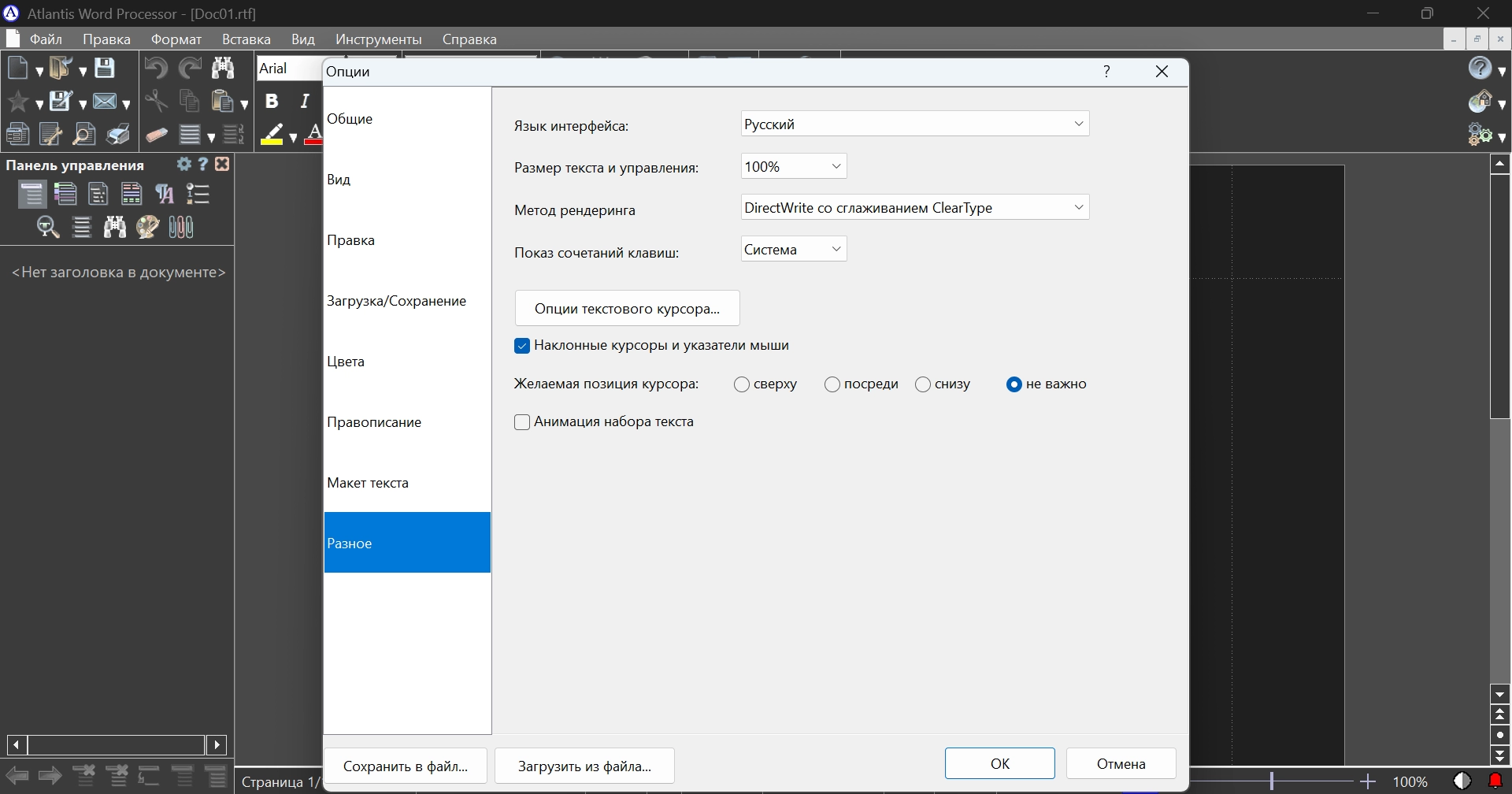 • Поддерживается работа с документами форматов RTF, MS Word, MS Write, TXT.