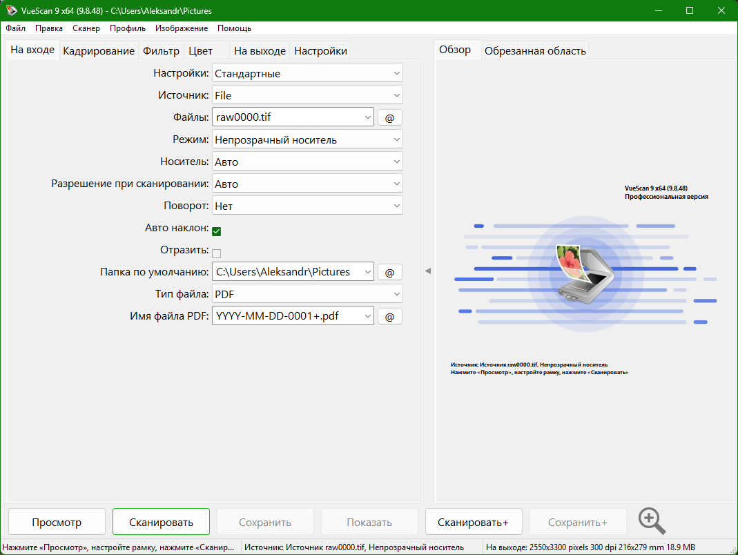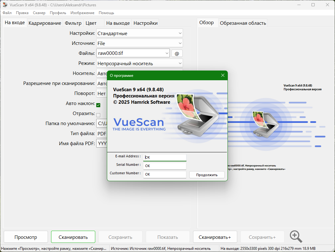 VueScan - программа предназначена для замены стандартного интерфейса сканера на собственный, функционально более богатый и предоставляющий массу дополнительных возможностей в зависимости от конкретной модели сканера. В большинстве случаев, стандартный драйвер устройства имеет крайне ограниченные возможности по регулировке параметров сканирования. Используя зачастую скрытые возможности конкретного сканера, программа позволяет гибко настроить процесс обработки изображений, включая развитую цветокоррекцию, возможности многопроходного и пакетного сканирования, аппаратную регулировку экспозиции, выбор максимальной глубины цвета и формата сохраняемых файлов.