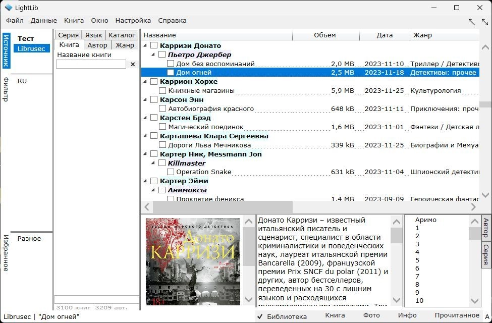 • группировка, сортировка по Книгам, Авторам, Жанрам, Языкам