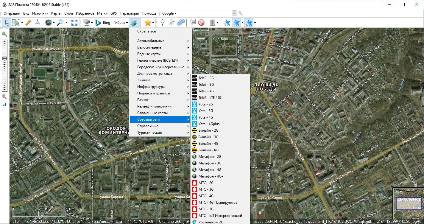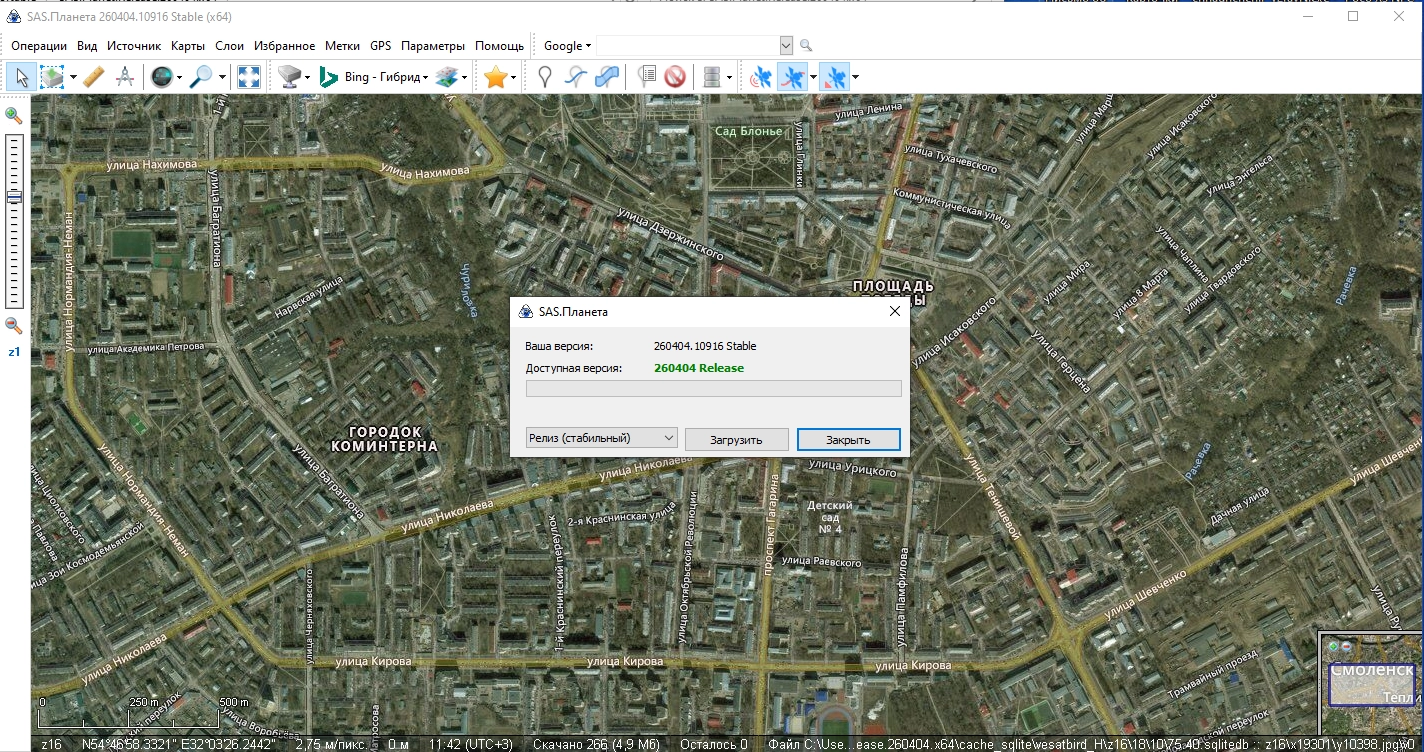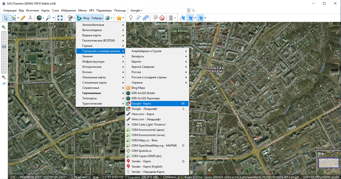 SAS.Планета / SAS.Planet / SASPlanet – свободно распространяемая портативная программа, предназначенная для просмотра и загрузки спутниковых снимков высокого разрешения и обычных карт, представляемых такими сервисами, как Google Earth, Google Maps, Bing Maps, DigitalGlobe, “Космоснимки“, Яндекс.карты, Yahoo! Maps, VirtualEarth, Gurtam, OpenStreetMap, eAtlas, iPhone maps, карты Генштаба и др., но, в отличие от этих сервисов, все скачанные вами карты останутся у вас на компьютере, и вы сможете их просматривать даже без подключения к интернету. Помимо спутниковых карт возможна работа с политической, ландшафтной, совмещенной картами, а также картой Луны и Марса.