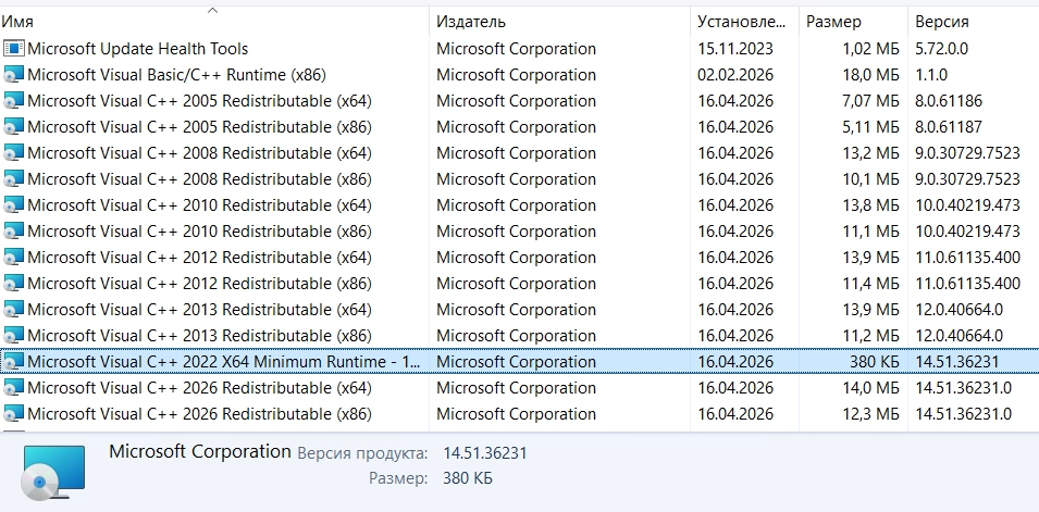• New: Visual C++ v14 (2026) Redistributable - 14.51.36231.0