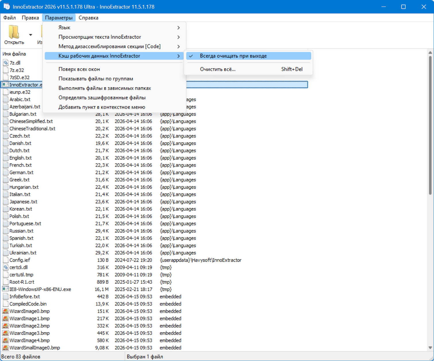 • Ваши настройки в папке: "InnoExtractor\AppData\Roaming\Havysoft\InnoExtractor\Config.ief"