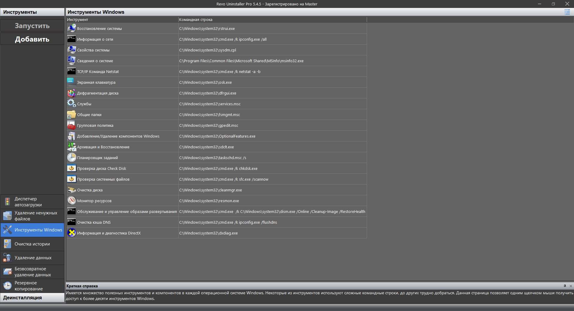• Инструменты Windows - полезные системные инструменты в одном месте;