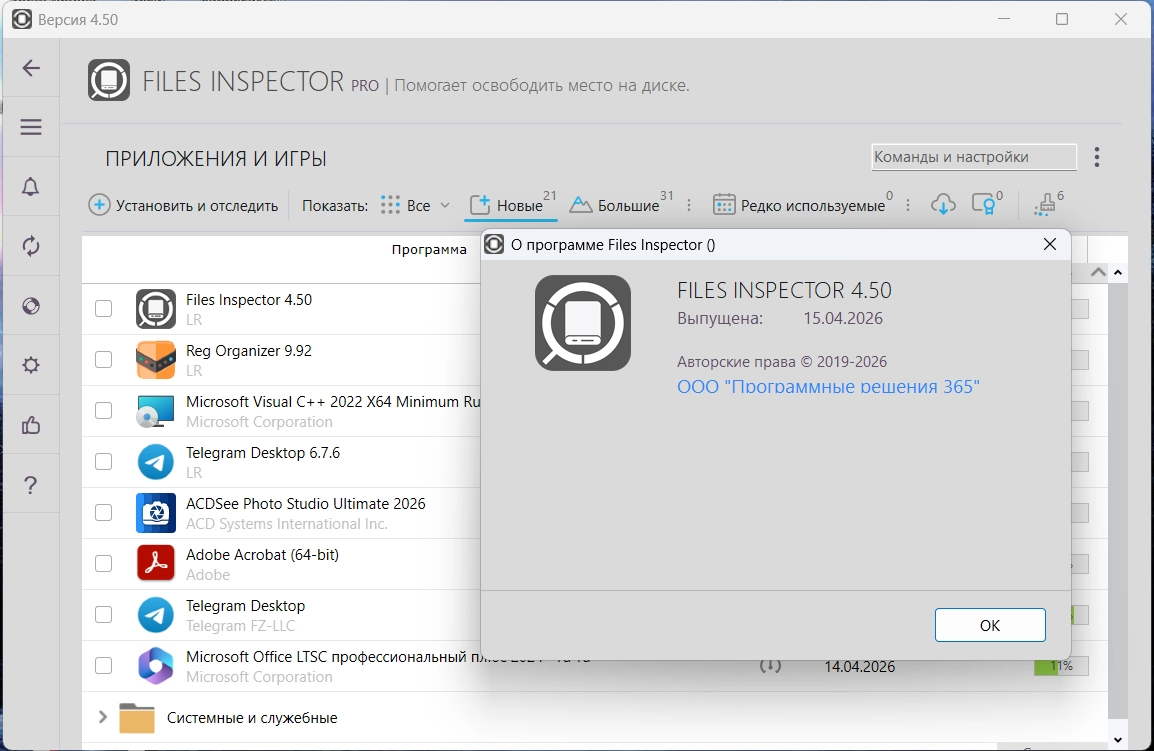 Files Inspector – программа от разработчика Reg Organizer для поиска и удаления ненужных пользовательских файлов, папок и приложений,