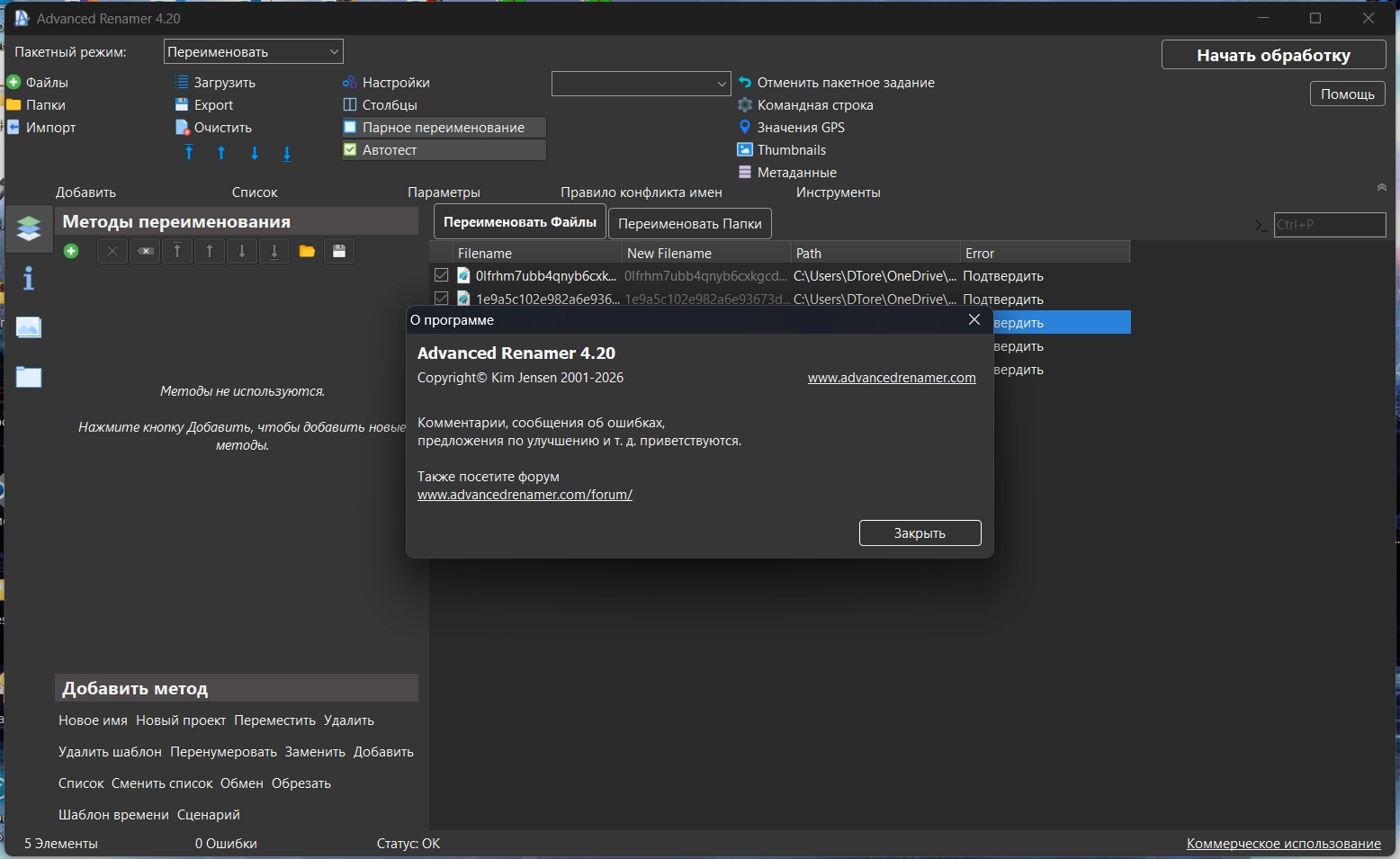 Advanced Renamer - довольно популярная программа для массового переименования, а также систематизации файлов в операционной системе Windows. В новых версиях данной утилиты была реализована поддержка новых тегов при работе с разными форматами файлов, например мультимедиа, были переработаны методы отвечающие за образование имен файлов.