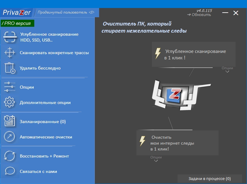 Одним щелчком мыши PrivaZer может безопасно очищать