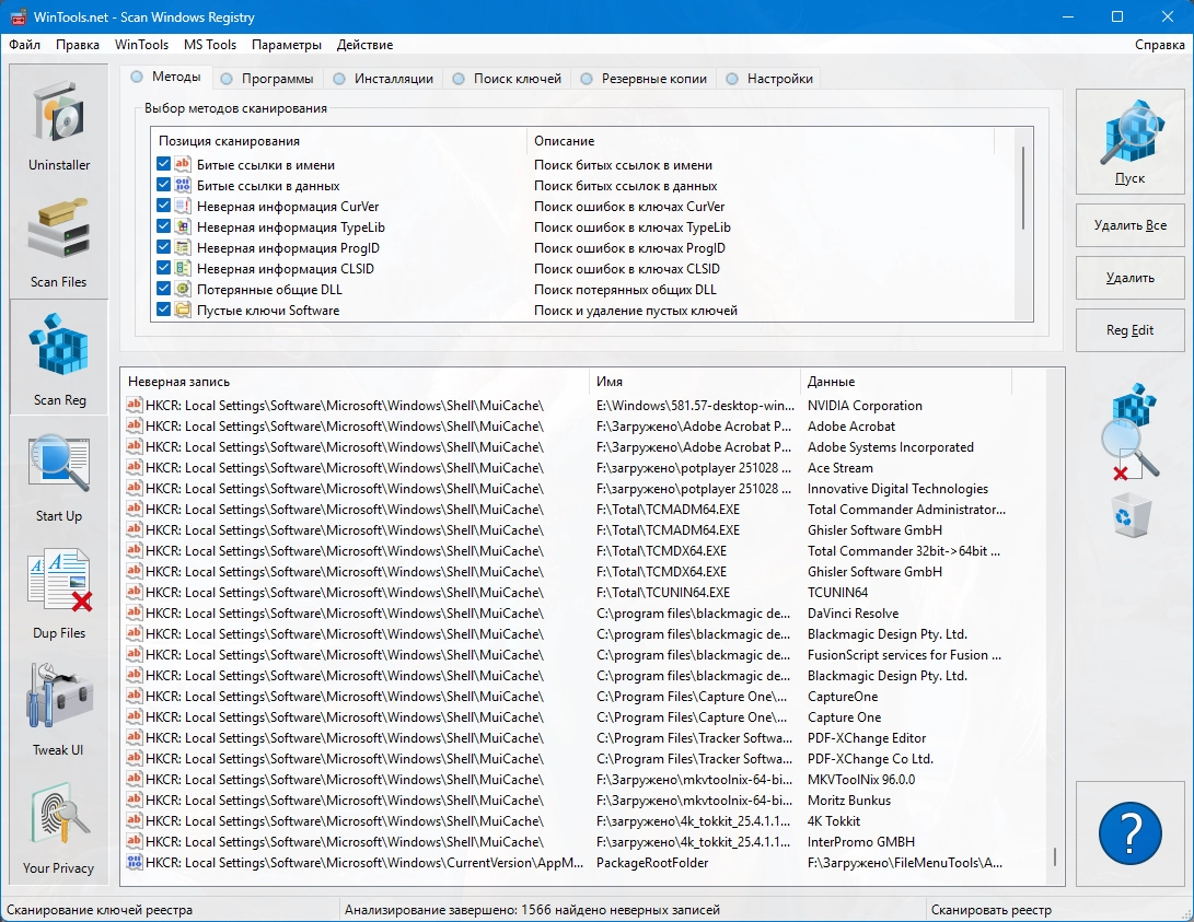 Многие программы используют реестр Windows для хранения собственных настроек, добавляя новые расширения файлов, устанавливая собственные компоненты. Но после деинсталляции этих программ очень часто записи о них не удаляются и остаются в реестре. Эти записи более не будут использоваться, но они занимают место. Реестр Windows при инсталляции/деинсталляции становится всё больше и больше, тем самым ухудшая производительность компьютера и время доступа рабочих программ к реестру. Инструмент «Scan Registry» предназначен для периодической очистки реестра и исправления не верных записей.