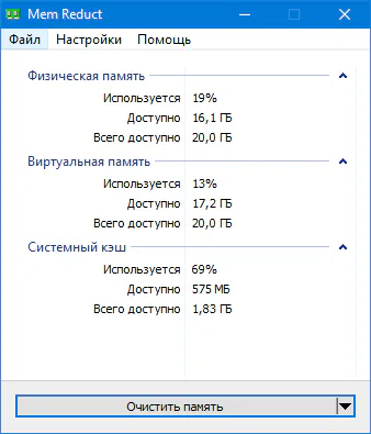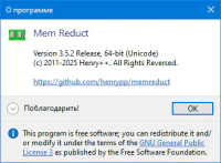 Mem Reduct - это легкое и хорошо себя зарекомендовавшее приложение для ручного управления памятью или автоматического контроля и освобождения памяти в режиме реального времени. В программе использованы родные недокументированные возможности системы (Native API) по очистке системного кэша (system working set, working set, standby page lists, modified page lists) с переменным от ~10 до ~50% результатом. Приложение совместимо с Windows XP SP 3 и более новыми операционными системами, но основные функции доступны только начиная с Windows Vista. Имеется портативные x32 и x64 битные версии. Для корректной работы, нужны права администратора.