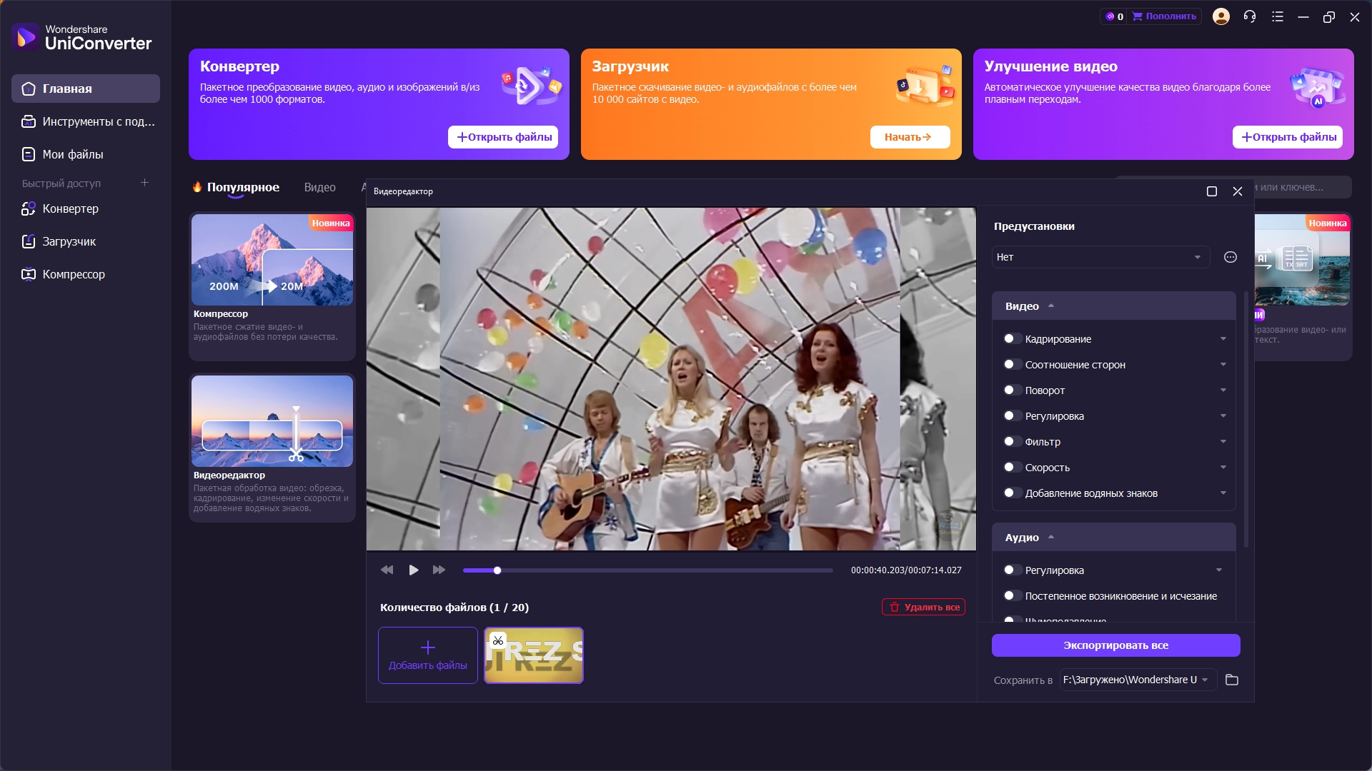 Поддерживаемые форматы, кодеки, устройства, графические процессоры: Wondershare UniConverter