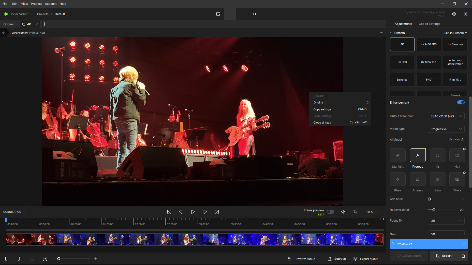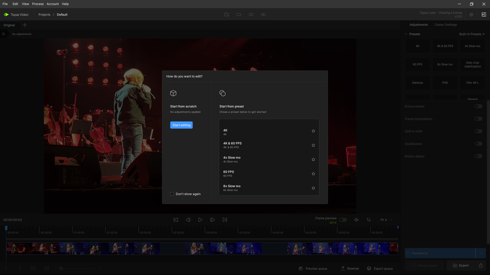 Topaz Video – это профессиональное программное обеспечение для улучшения видео на базе искусственного интеллекта, которое позволяет удалять шум из видео, снятого при слабом освещении, восстанавливать и повышать разрешение старых архивных видео до 4K, восстанавливать фокус и регулировать частоту кадров, создавая новые кадры буквально из воздуха.