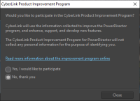 При запуске отказаться от участия в программе по улучшению PowerDirector