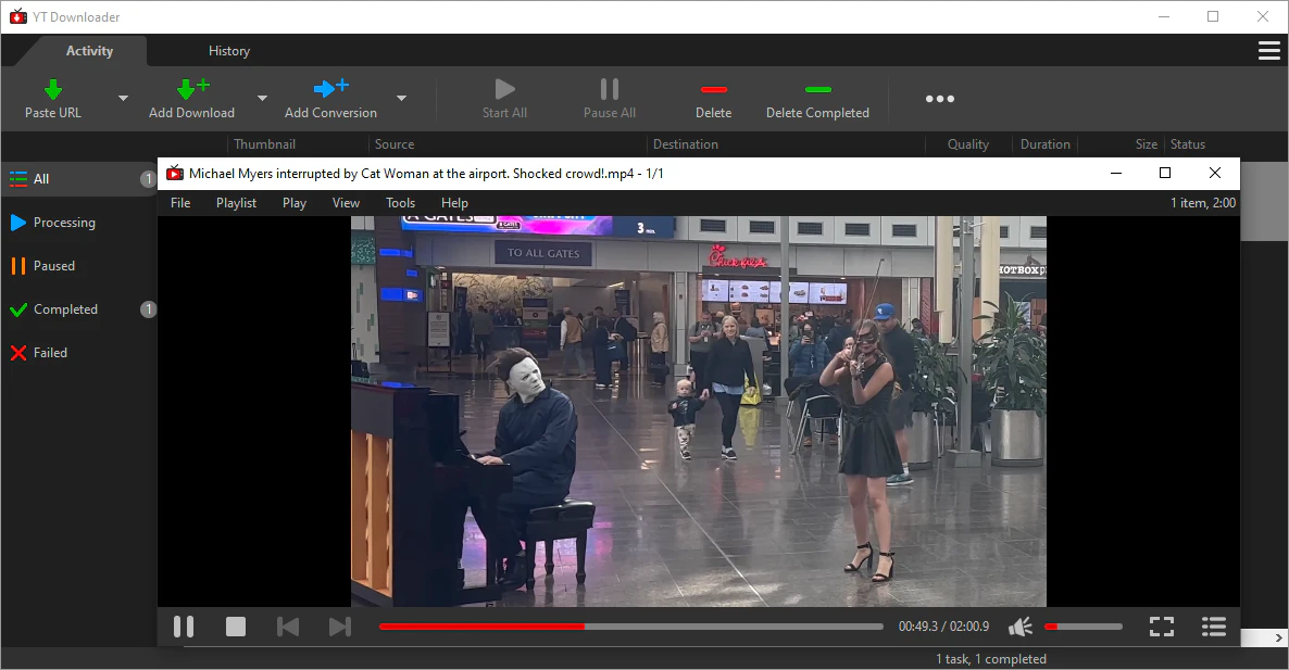 YT Downloader включает в себя простой и удобный в использовании медиаплеер. Если ваш Проигрыватель Windows Media не может воспроизводить ваши видео / аудио файлы, вы можете попробовать наш медиаплеер.