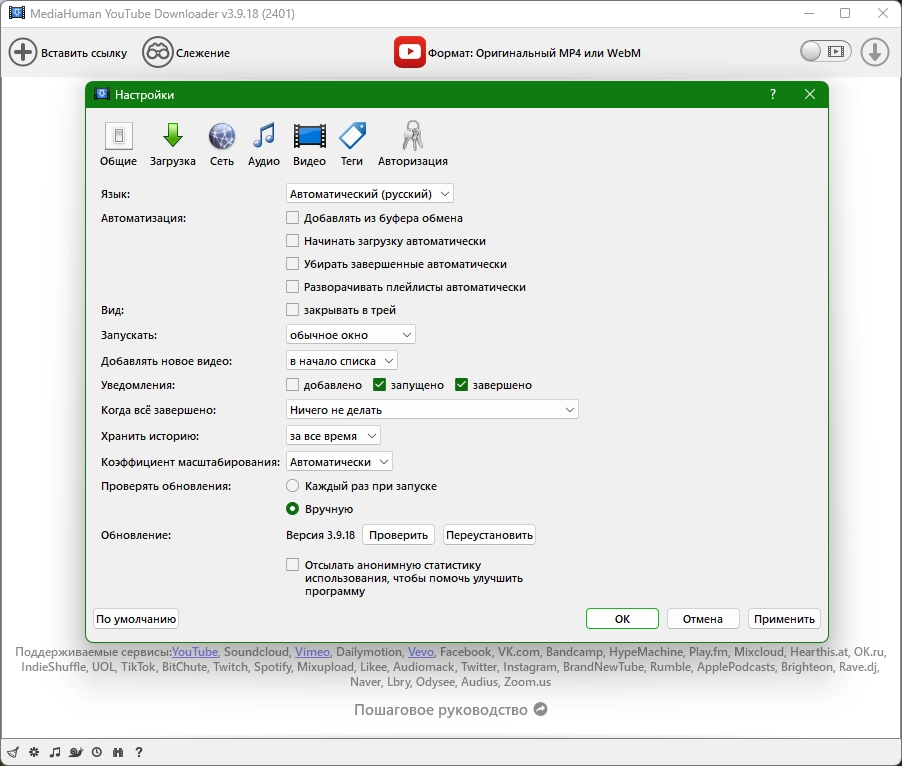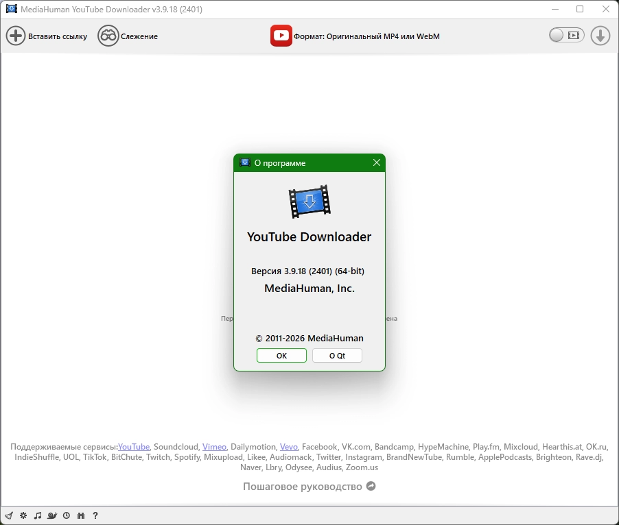 Программа также поддерживает Rutube, Vevo.com, Vimeo, Dailymotion, Facebook, ВКонтакте, OK.ru, Bitchute, Rumble, Odysee, Soundcloud и множество других сайтов. Так что вы можете скачивать видео с этих сервисов так же легко, как и с YouTube.