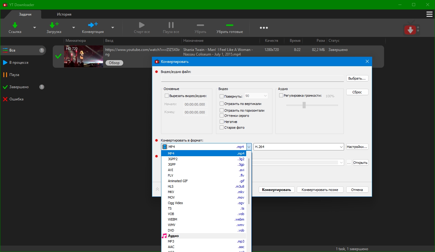 YT Downloader предоставляет готовые пресеты для всех видео-и аудиоформатов. Вы также можете настроить параметры выходного видео/аудио формата.