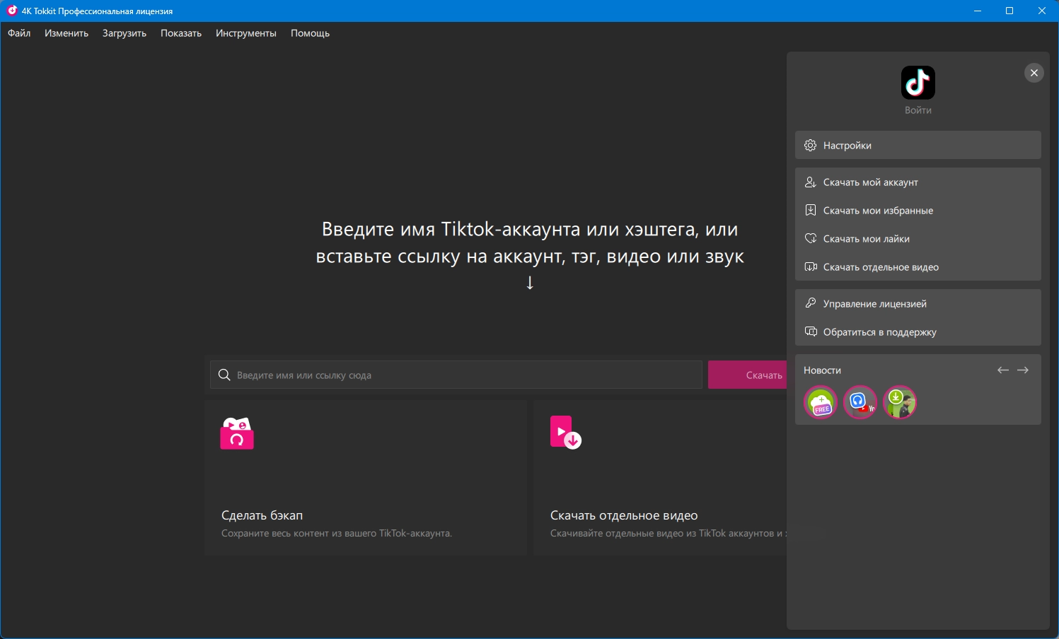 4K Tokkit — это приложение для массового скачивания контента из TikTok. Сохраняйте TikTok-челленджи, описания видео, целые аккаунты и хэштеги, а также отдельные клипы в высоком качестве. Смотрите TikTok-видео оффлайн, просматривайте ленту TikTok без рекламы, репостите ролики в другие социальные сети.