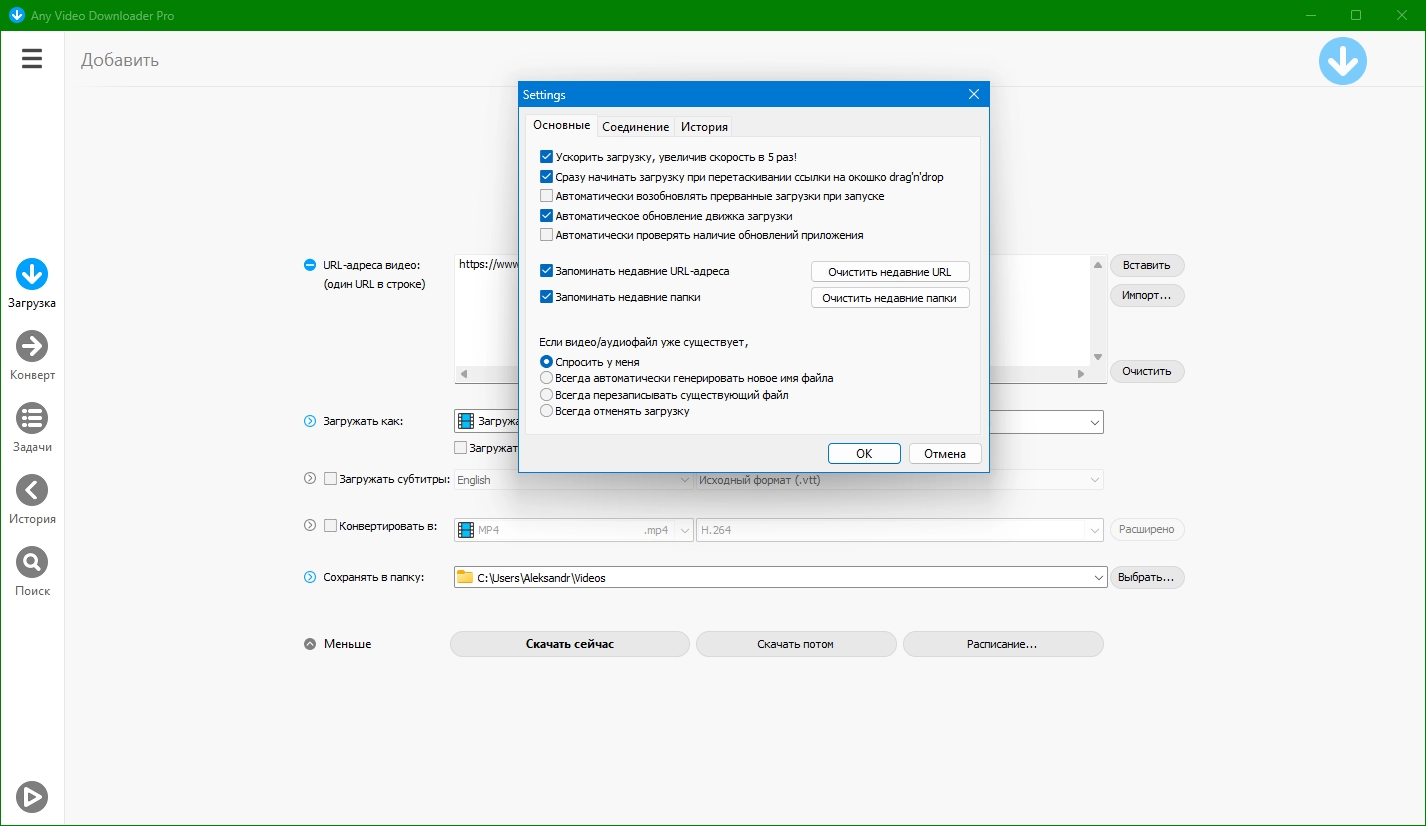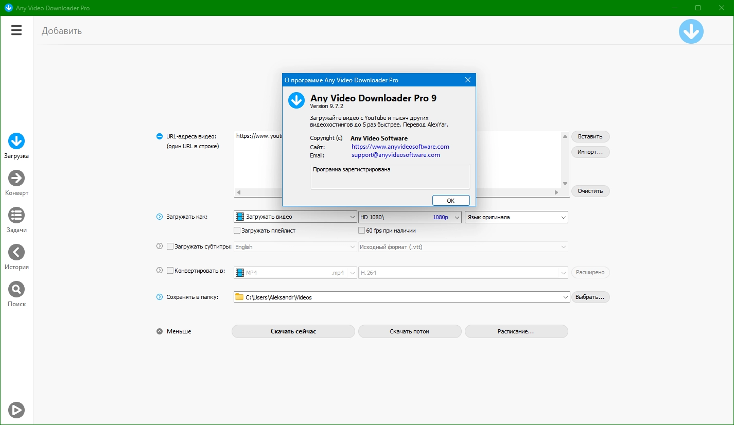 Any Video Downloader Pro - это приложение для Windows, которое поможет вам загружать видео с YouTube, Facebook, Dailymotionи многих других сайтов обмена видео. Это ускоряет ваши загрузки до 5 раз. В программе есть возможность конвертировать видео и плеер для их просмотра.