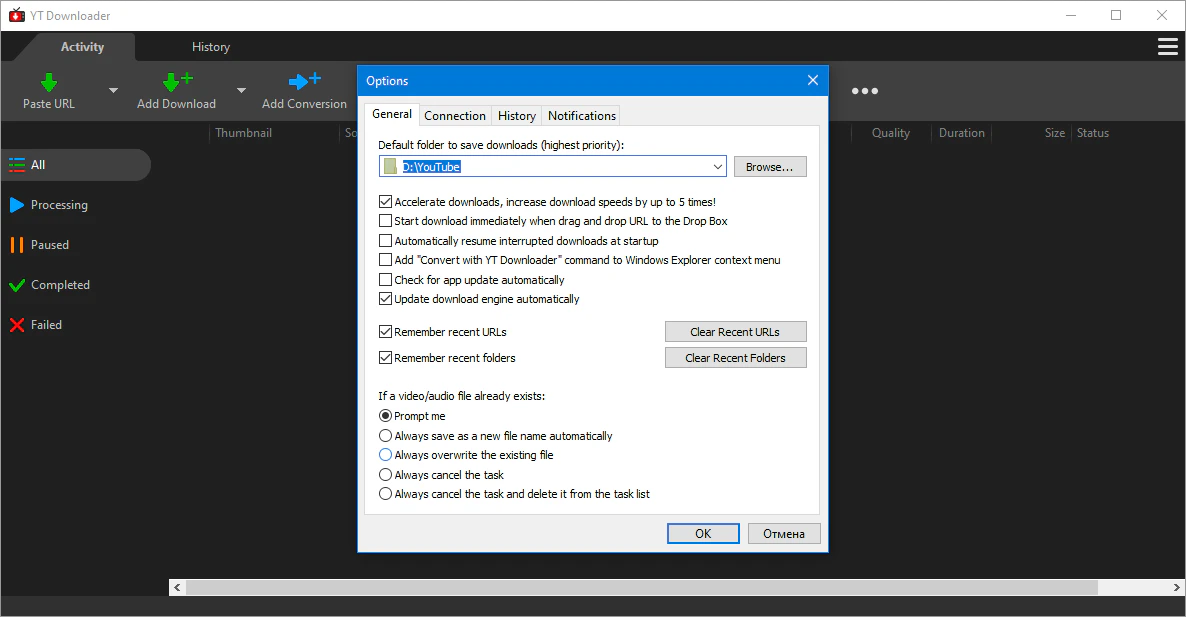 YT Downloader имеет продвинутый механизм ускорения загрузки, который позволяет загружать видео на 500% быстрее, чем обычная скорость.