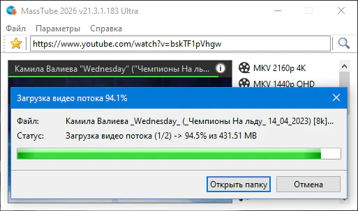 • Возможность скачивания видео с разрешением — «4320p Ultra HD 8k», «2160p Ultra HD 4k», «1440p Quad HD», «1080p Full HD»;