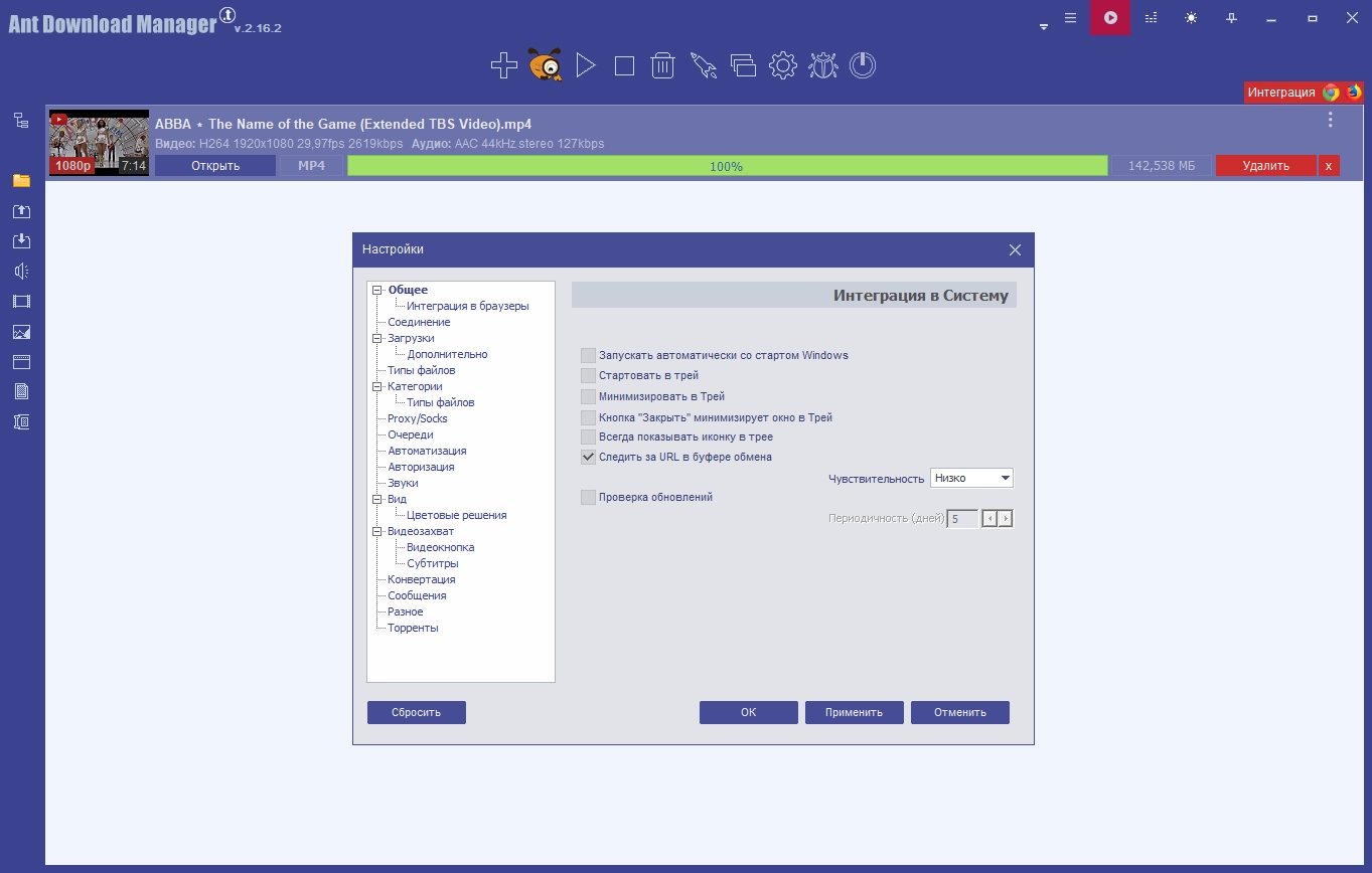 • Позволяет не только скачивать аудиофайлы, но и извлекать звуковые дорожки из видеофайлов, конвертировать их в популярный формат MP3 и добавлять к ним основную сопроводительную информацию. Одним из преимуществ Ant Download Manager является простой встроенный видеоредактор. Он позволяет выполнять простые наиболее распространенные действия, такие как обрезка, изменение размера видео и т. д.