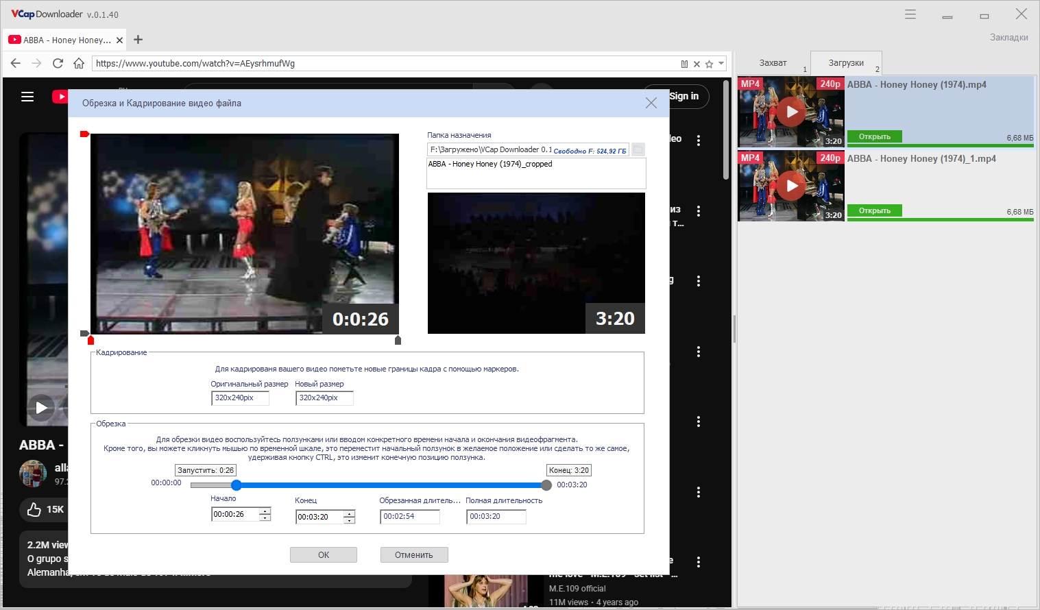 Одним из преимуществ VCap Downloader является простой встроенный видеоредактор. Он позволяет выполнять самые простые и распространенные действия, такие как обрезка, кадрирование или изменение размера видео».