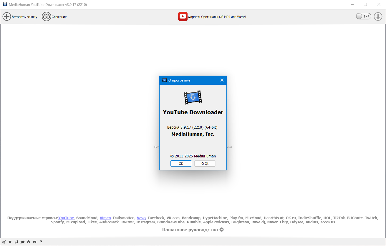 Программа также поддерживает Rutube, Vevo.com, Vimeo, Dailymotion, Facebook, ВКонтакте, OK.ru, Bitchute, Rumble, Odysee, Soundcloud и множество других сайтов. Так что вы можете скачивать видео с этих сервисов так же легко, как и с YouTube.